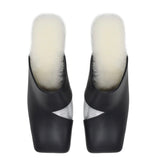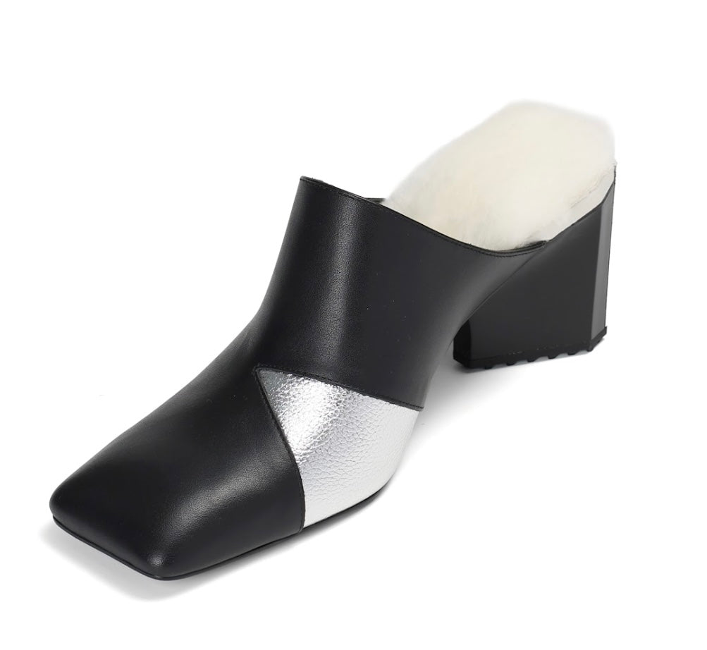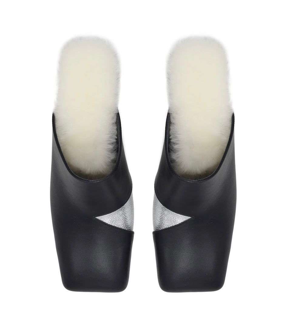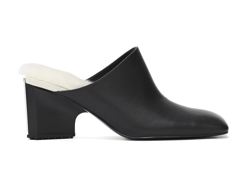 The Mirror Ella Clog Features a modest heel and shearling lining.