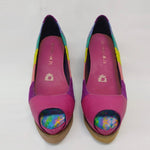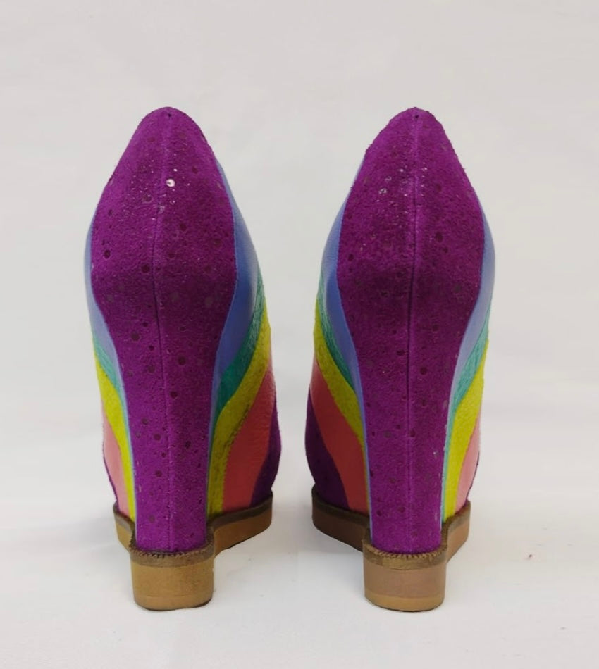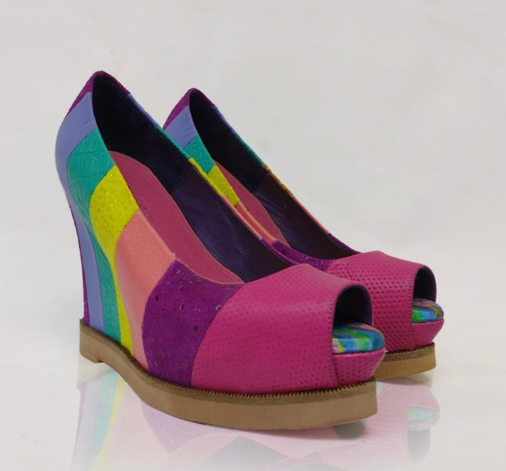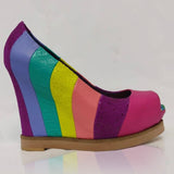limited edition hand made rainbow multi-color peep toe wedge pump