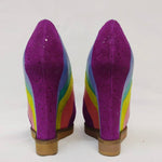 limited edition hand made rainbow multi-color peep toe wedge pump back view