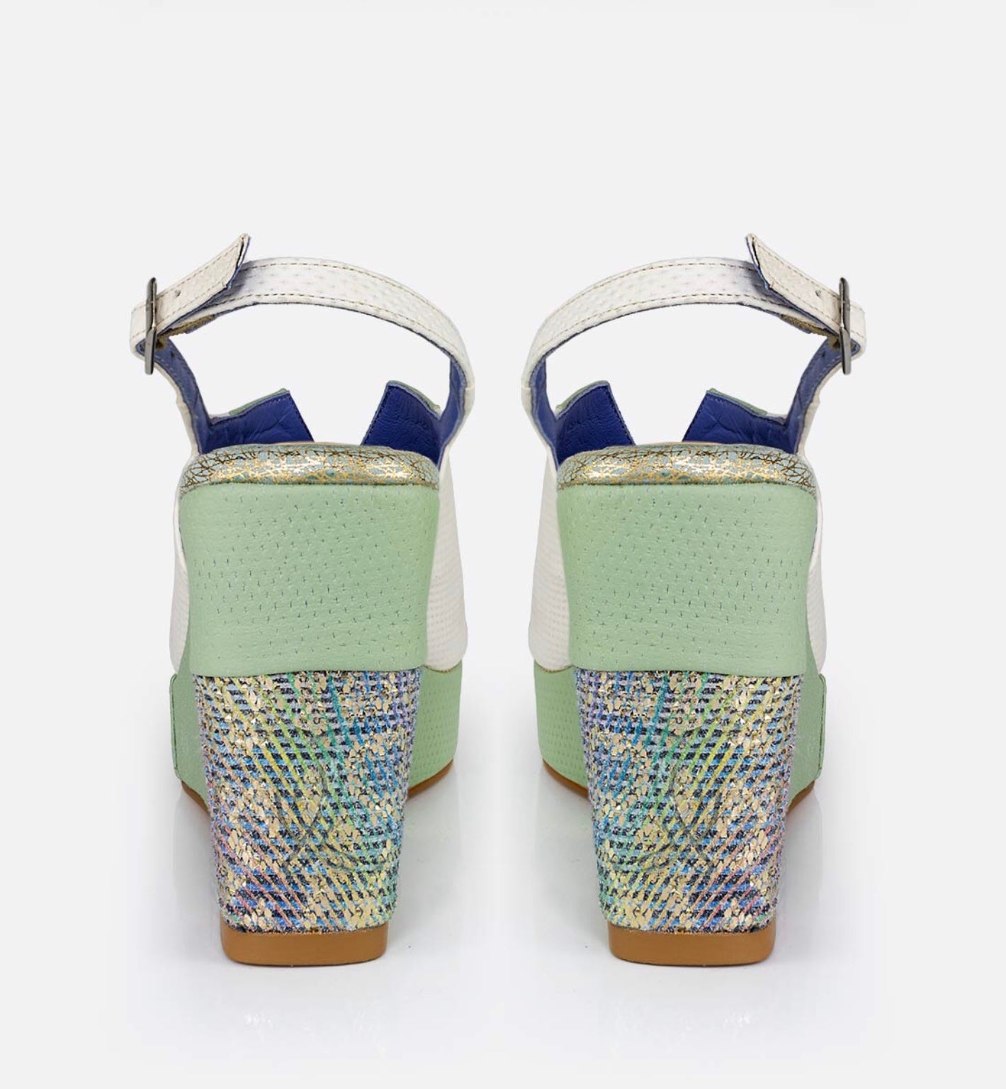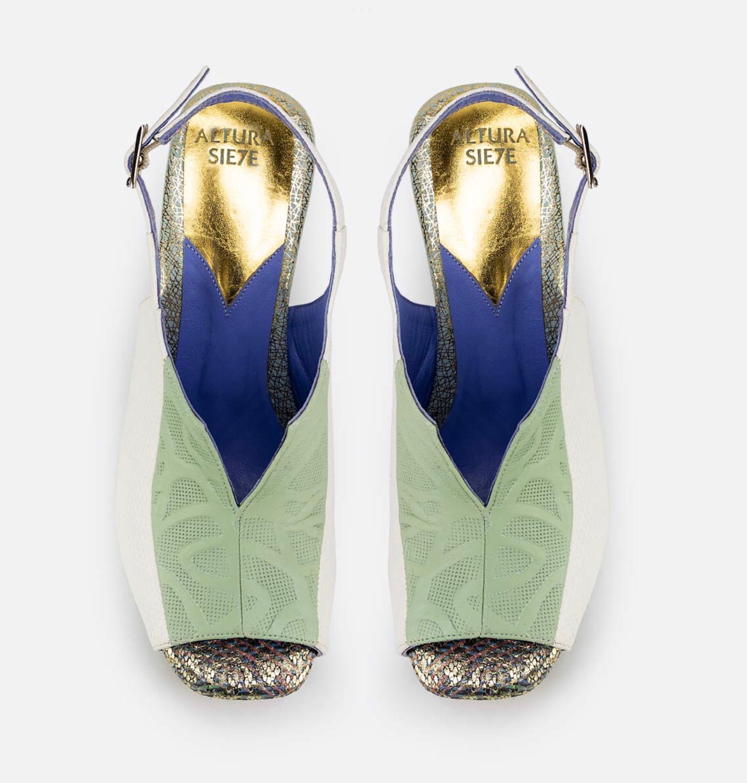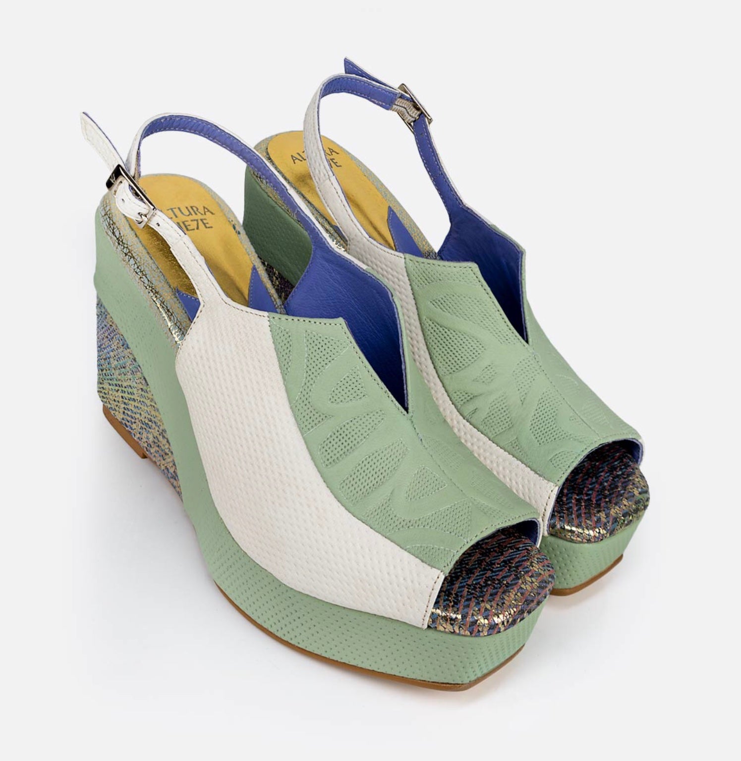 Beautiful, limited edition handmade wedge sandal by Altura Sie7e.