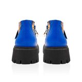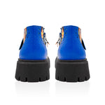 blue multi-color bootie with chunky heel by altura sie7e from Shoe Be Do USA back view