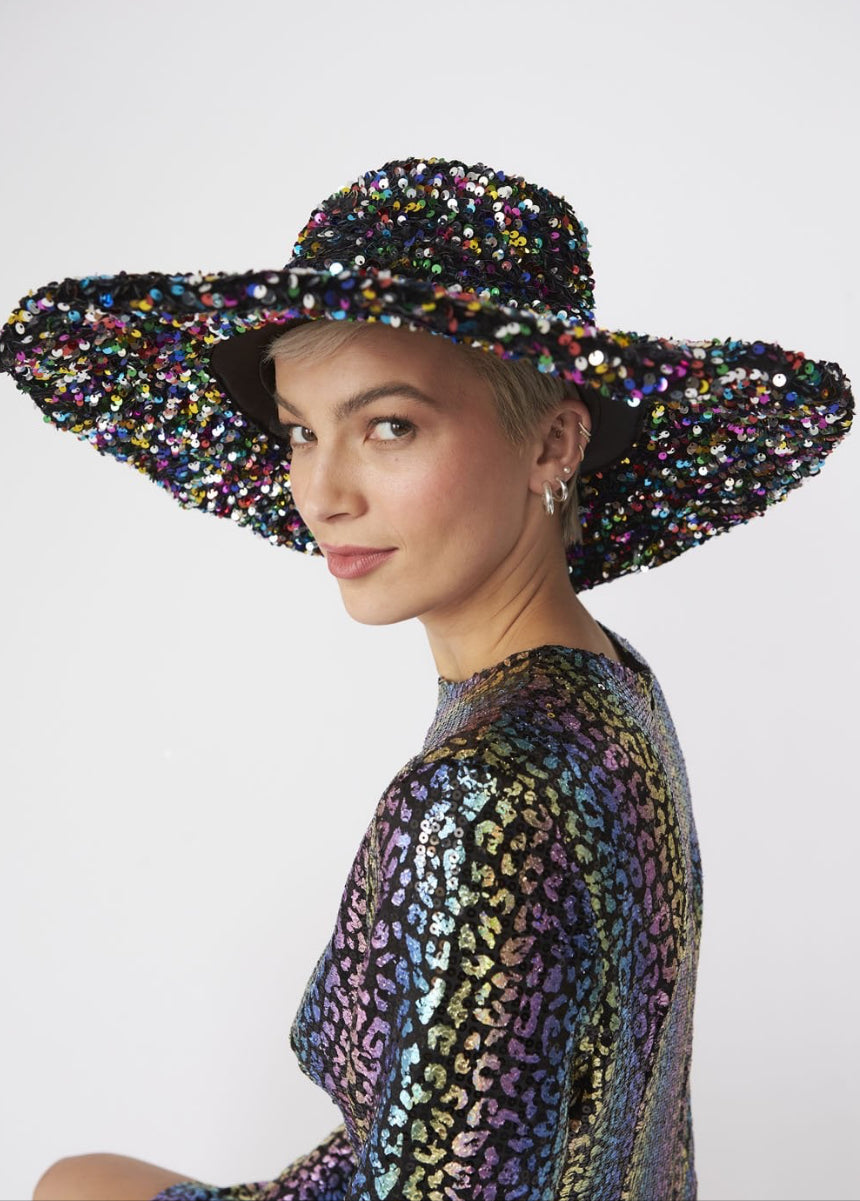 Sequin oversized hats just got upgraded. Add a touch of sparkle and playfulness to your look with our silk-lined sequin oversized hat.