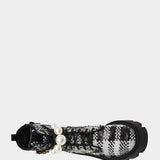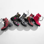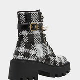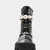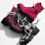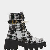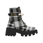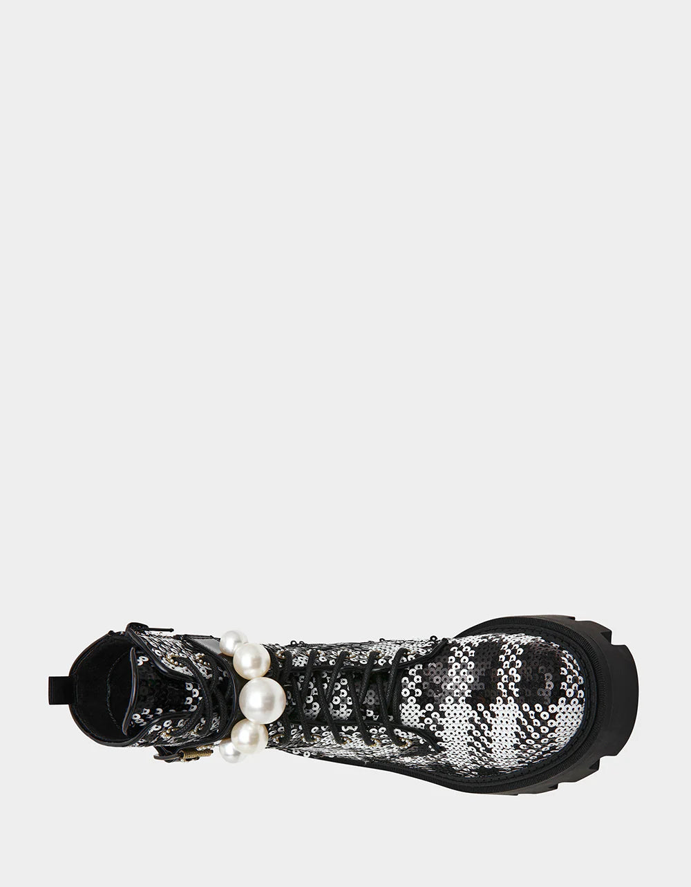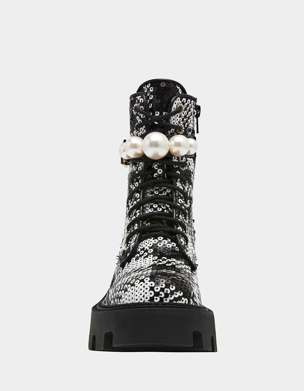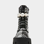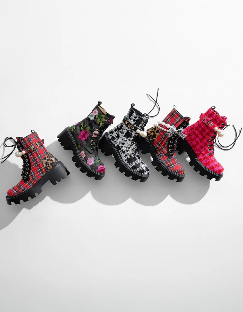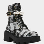 Add a pop of color and sass to your outfit with these JONNIE lug ankle boots. Show off your playful side with pearl embellishments and lace-up combat bootie style. Perfect for standing out in a sea of basic boots. Get ready to turn heads!