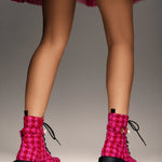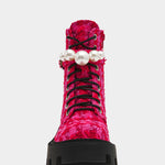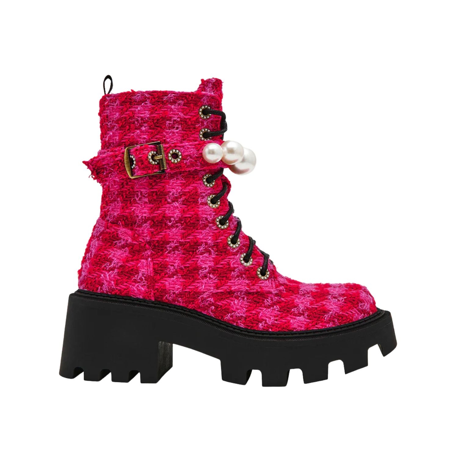 Add a pop of color and sass to your outfit with these JONNIE lug ankle boots. Show off your playful side with pearl embellishments and lace-up combat bootie style. Perfect for standing out in a sea of basic boots. Get ready to turn heads!