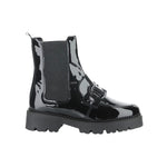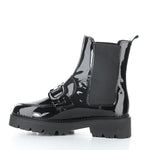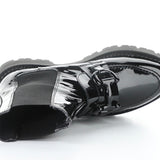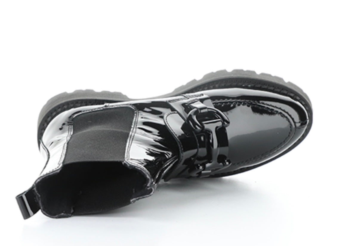 • Side zip closure, loafer-inspired design, metal accents, rounded toe
