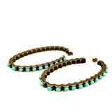 From our Gina Riley jewelry collection. These Rebel burnished oval hoop earrings feature an antique brass finish with semi precious stones. Handmade in Brooklyn.