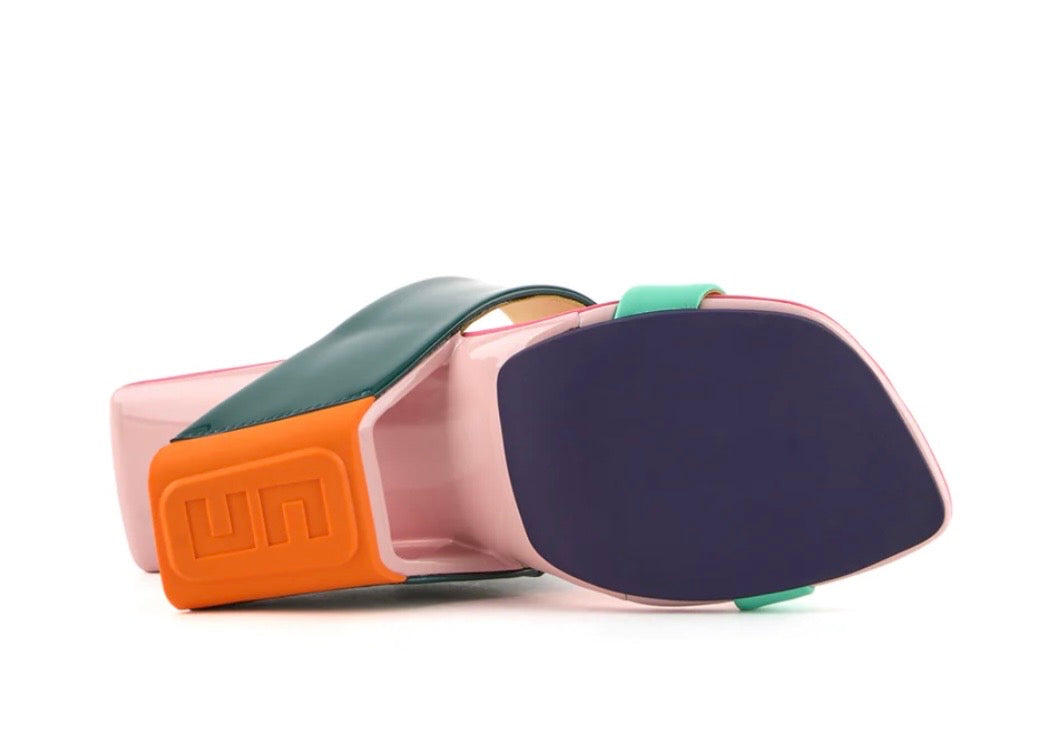 Introduced in 2004, the Loop Hi is a timeless classic from United Nude. This iconic high-heel sandal features a floating leather footbed that slips through a loop, functioning as both the heel and the upper. The molded leather footbed is supported by a sturdy fiber-reinforced nylon heel, and hidden elastics in the top strap ensure a secure and comfortable fit. The heel forms a striking cantilevered architectural structure, adding a unique and futuristic element to the design.