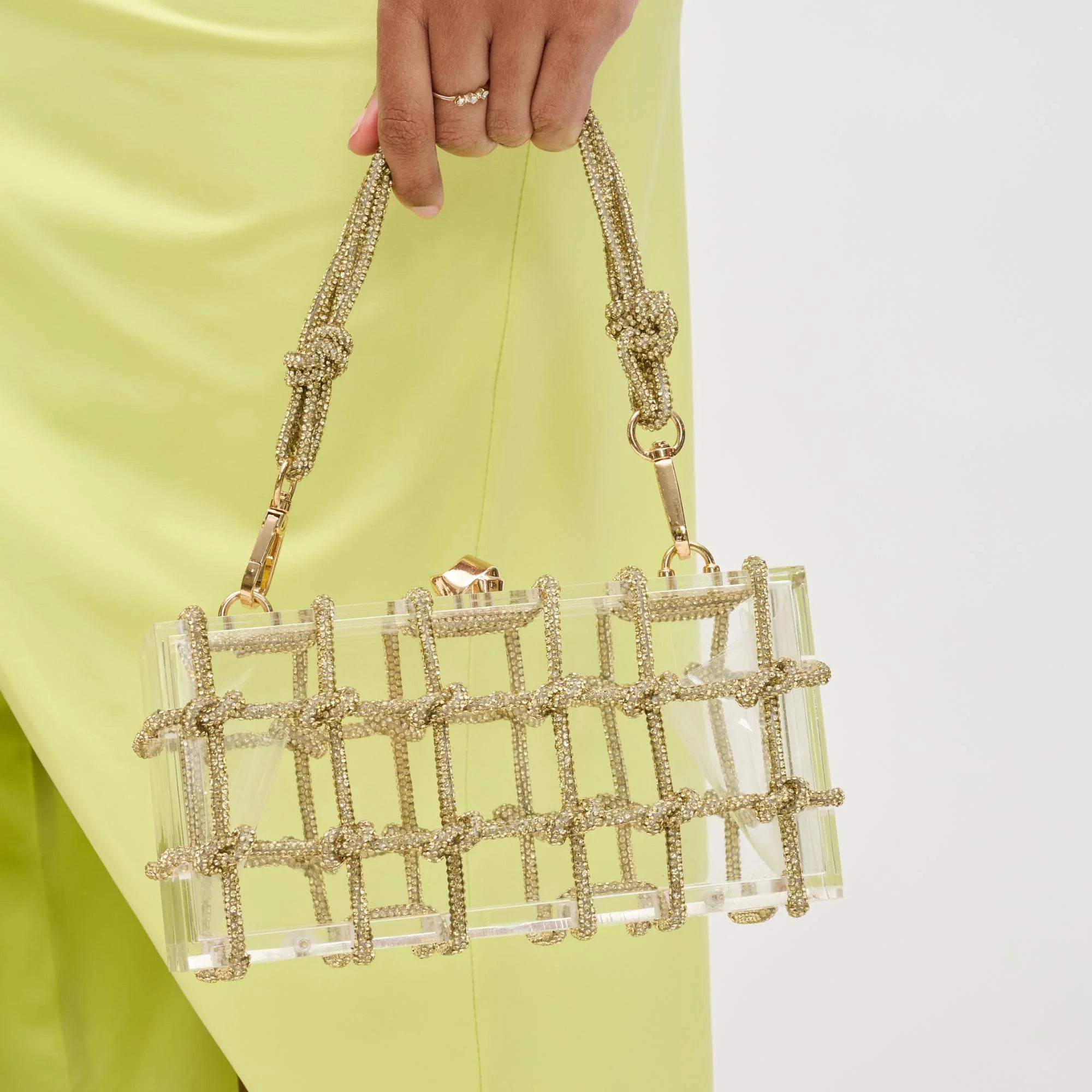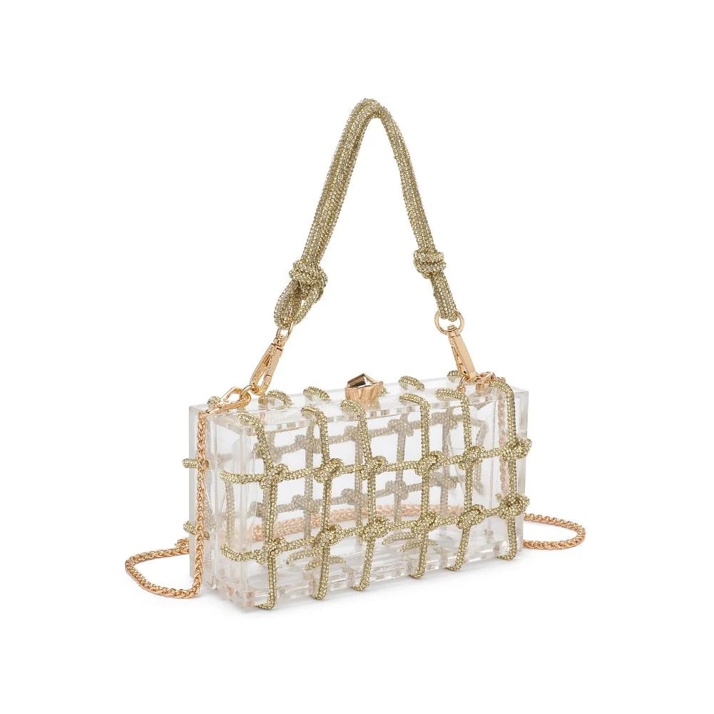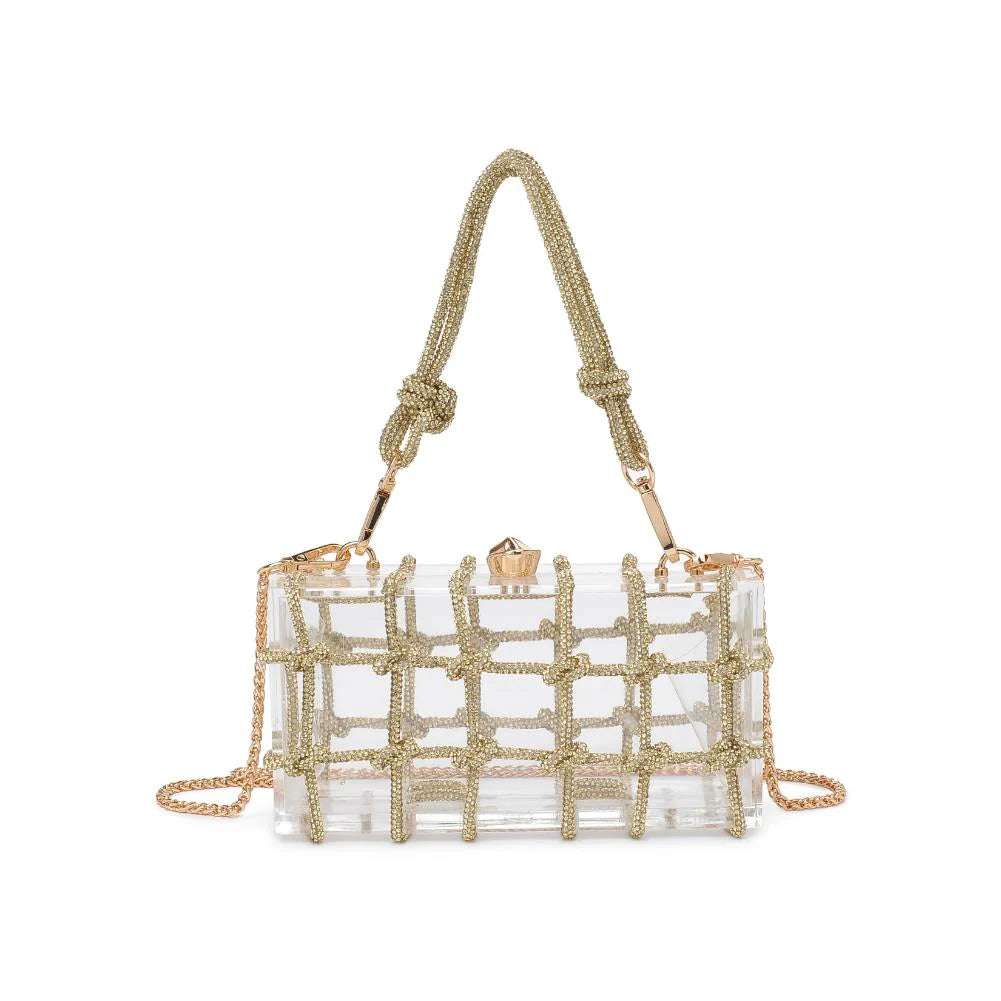 Perfect for a night of dancing and fun, this evening bag will be your go-to accessory for days when you want to make a sassy statement. Crafted in clear lucite with an intricate pink rhinestone design, the Ziggy adds just enough sparkle to any ensemble. The gold hardware adds an extra touch of glamour and sophistication for evenings out on the town. For added convenience, there’s a snap closure so all of your important items are secure while you dance the night away!