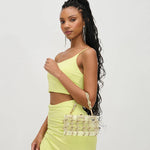 • Exterior Details: See-through design, silver rhinestone handle and design, silver hardware